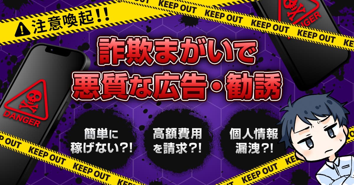 簡単に稼げるなど謳うにも関わらず、実際には収益が得られるどころか「いつの間にか詐欺や金銭被害に発展してしまう」ケースが後を絶ちません。